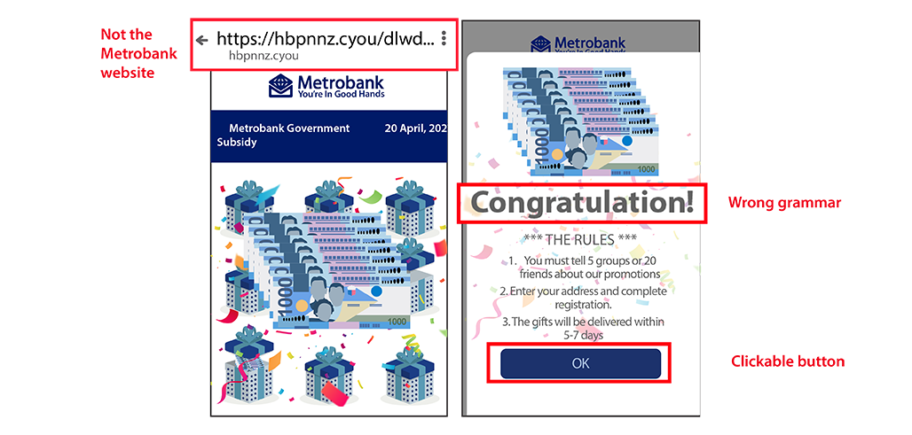 Watch out for posts that claim that Metrobank is giving away PHP 7,000 in “government subsidies.” This is not true.