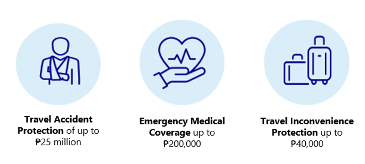Coverage Start: Begins when the cardholder leaves their residence or workplace in the Philippines, but not earlier than 3 hours before the scheduled departure.