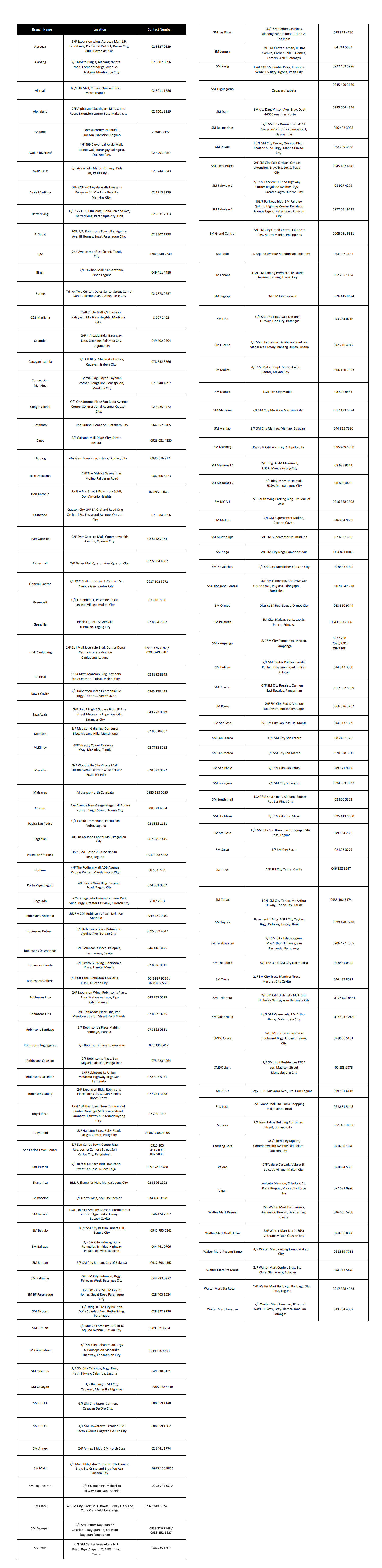 The promo can be availed at the following Miladay branches: